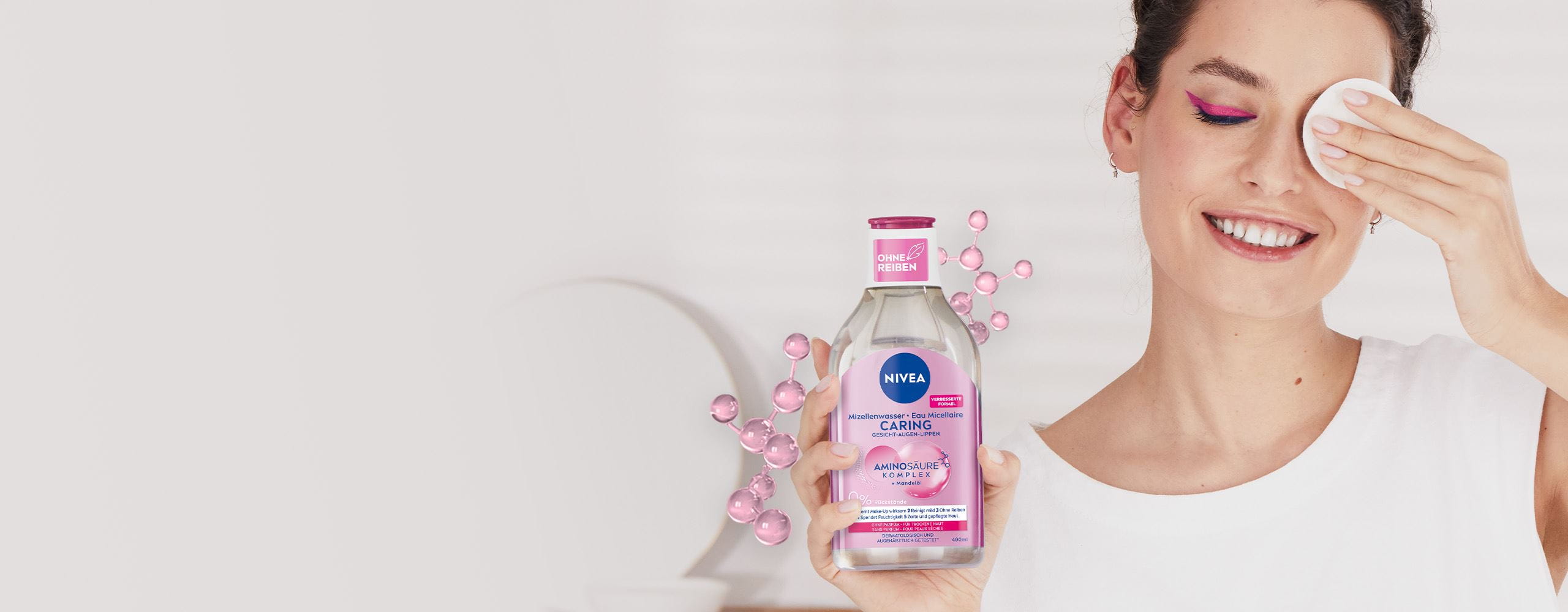 Die bewährte Kraft der reinigenden Mizellen verbindet sich jetzt mit sanften Aminosäuren. Die neue Formel entfernt Make-Up, Unreinheiten und Schmutz mit nur wenigen, federleichten Wischen! Sanft zur Haut, ohne Reiben!