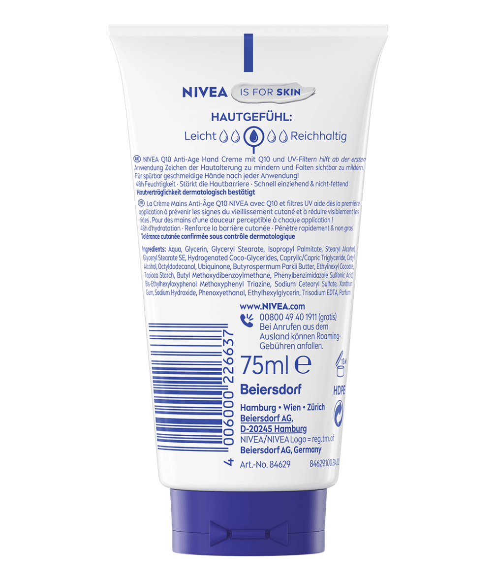 Die glättende Pflege mit hauteigenem Q10 mildert sichtbar Falten und schützt vor UV-bedingten Altersflecken.