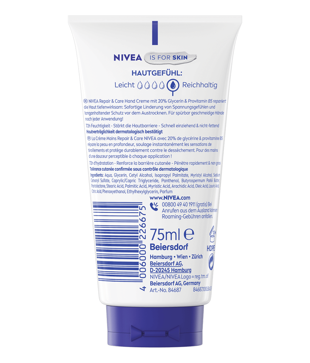 Sofort-Hilfe bei sehr trockenen und rissigen Händen mit langanhaltendem Schutz: NIVEA Repair & Care Hand Creme