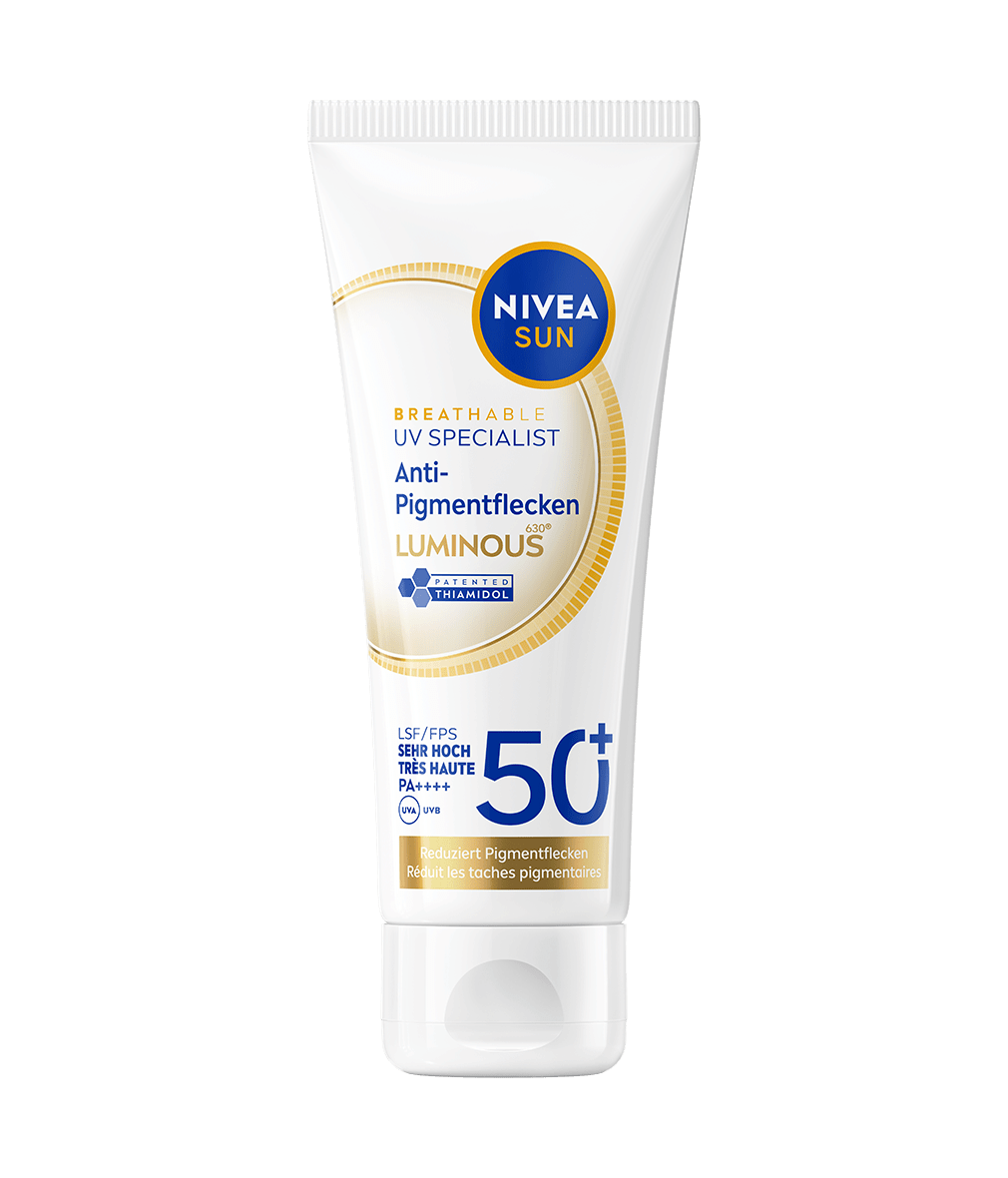 Die leichte, atmungsaktive UV Face Luminous Anti-Pigments LSF 50+ schützt zuverlässig vor lichtbedingter Hautalterung und hilft, Pigmentflecken sichtbar zu reduzieren. Mit der patentierten Thiamidol®-Formel für ebenmässige, strahlend schöne Haut – ohne die Poren zu verstopfen.
