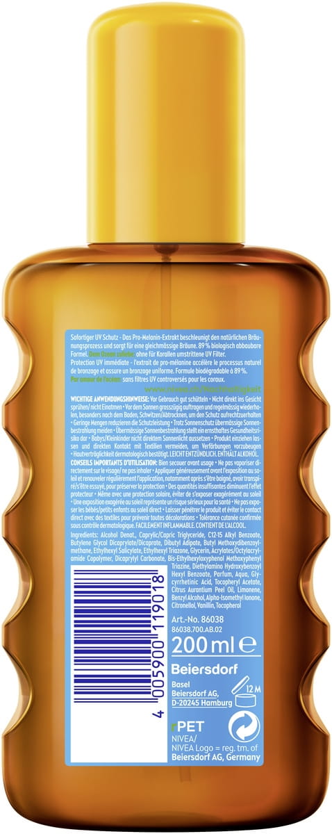 Das Sonnenöl mit doppeltem Effekt: Sofortiger UV Schutz und eine natürliche Bräunung der Haut. NIVEA Sun Protect & Bronze Sonnenöl LSF 30.