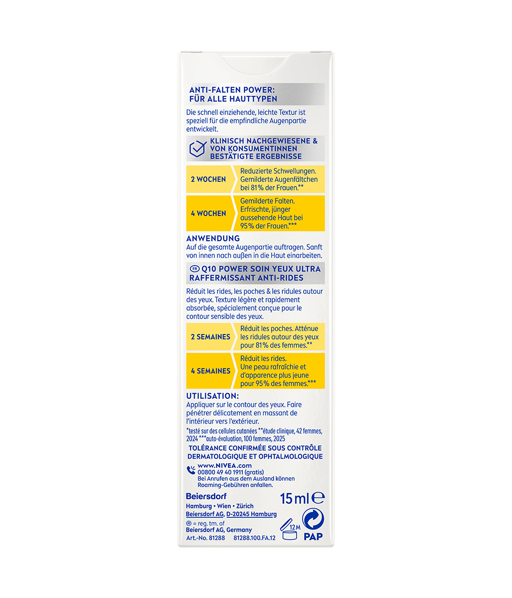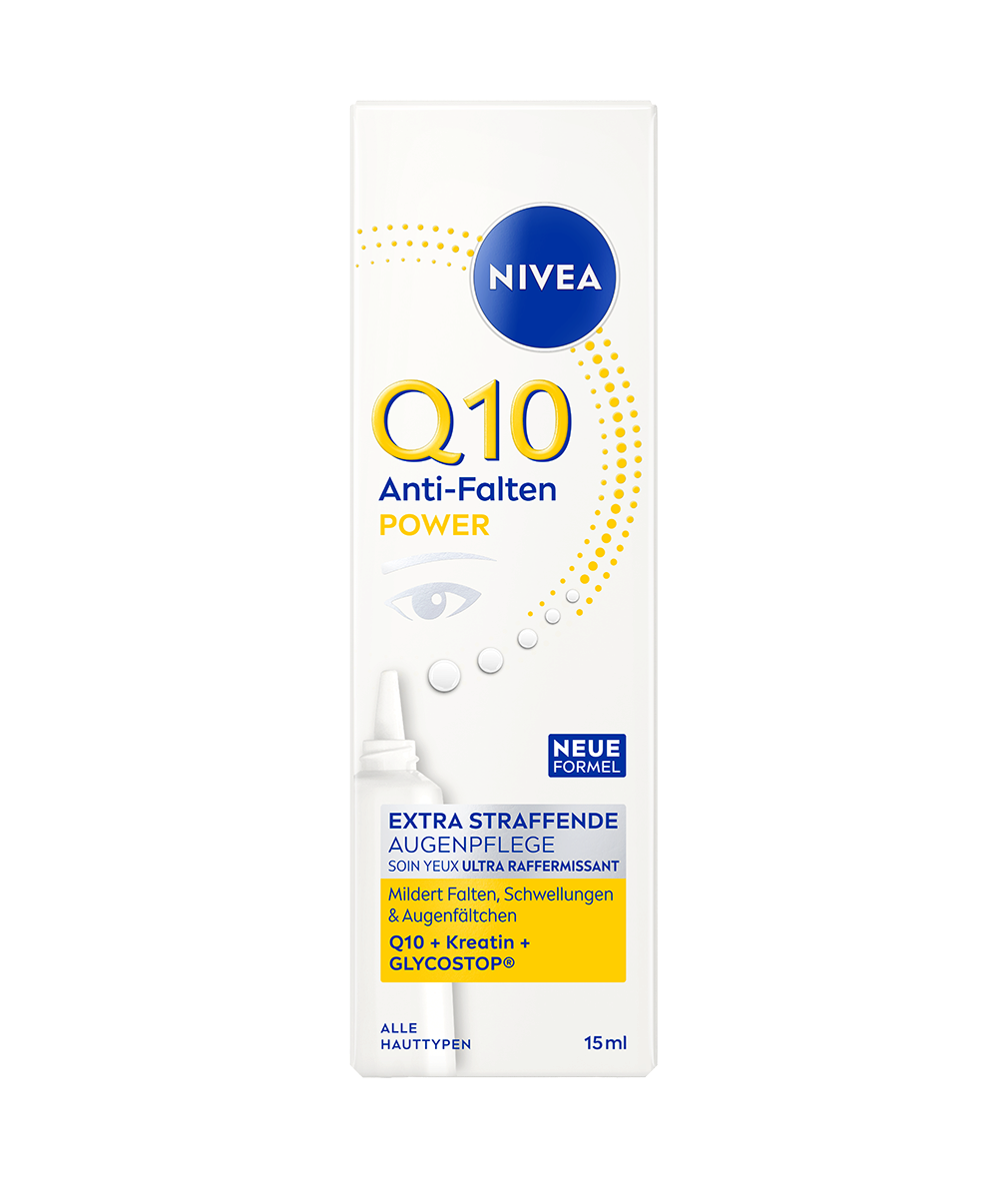 NIVEA Q10 Anti-Falten Power Augenpflege ist eine patentierte Formel, die speziell entwickelt wurde, um Augenfältchen zu reduzieren und die Augenpartie zu revitalisieren. Die nachweislich wirksame Anti-Falten-Pflege für die empfindliche Augenpartie ist für alle Hauttypen geeignet.
