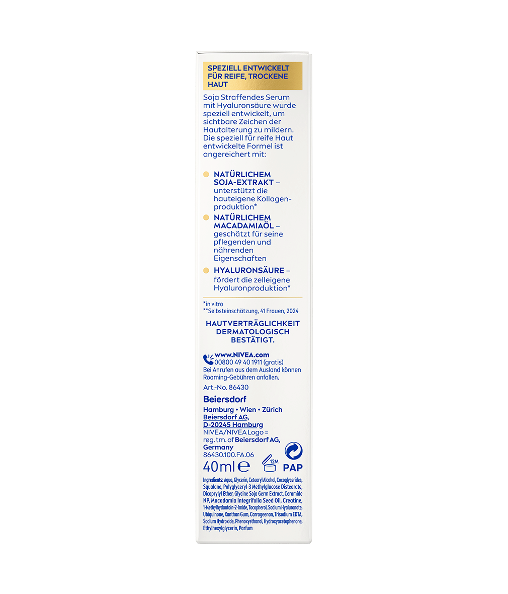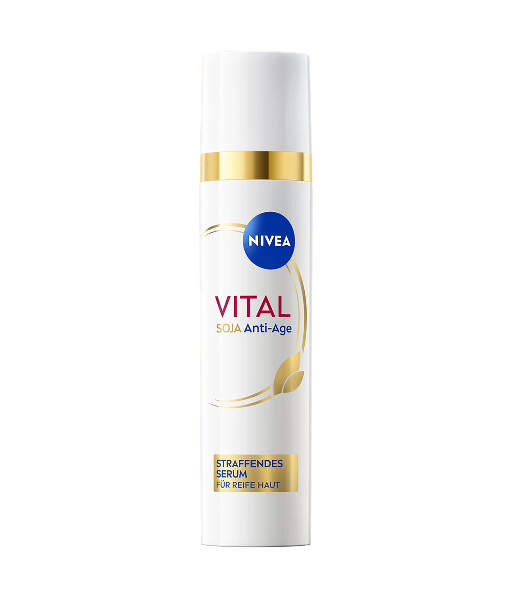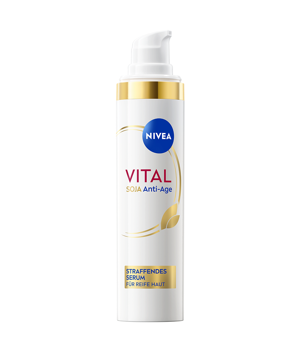 Das NIVEA Vital Soja Anti-Age Straffendes Serum mit Hyaluronsäure wurde speziell entwickelt, um sichtbare Zeichen der Hautalterung zu mildern.