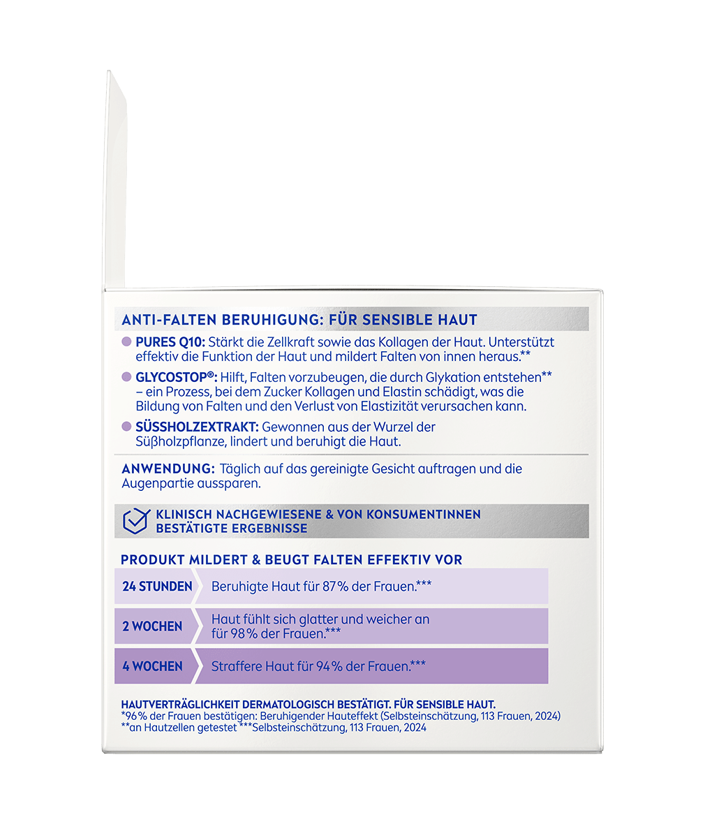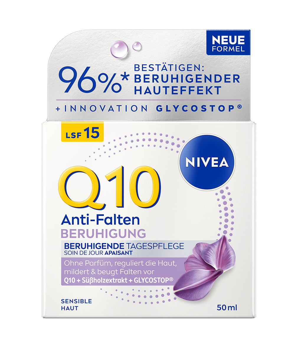 Spécialement mise au point pour répondre aux besoins des peaux sensibles, sa formule associe du Q10 activateur de cellules et 10x plus de Créatine à de l’extrait apaisant de réglisse: Soin de Jour Sensitive Anti-Rides Q10 Power FPS 15 NIVEA.
