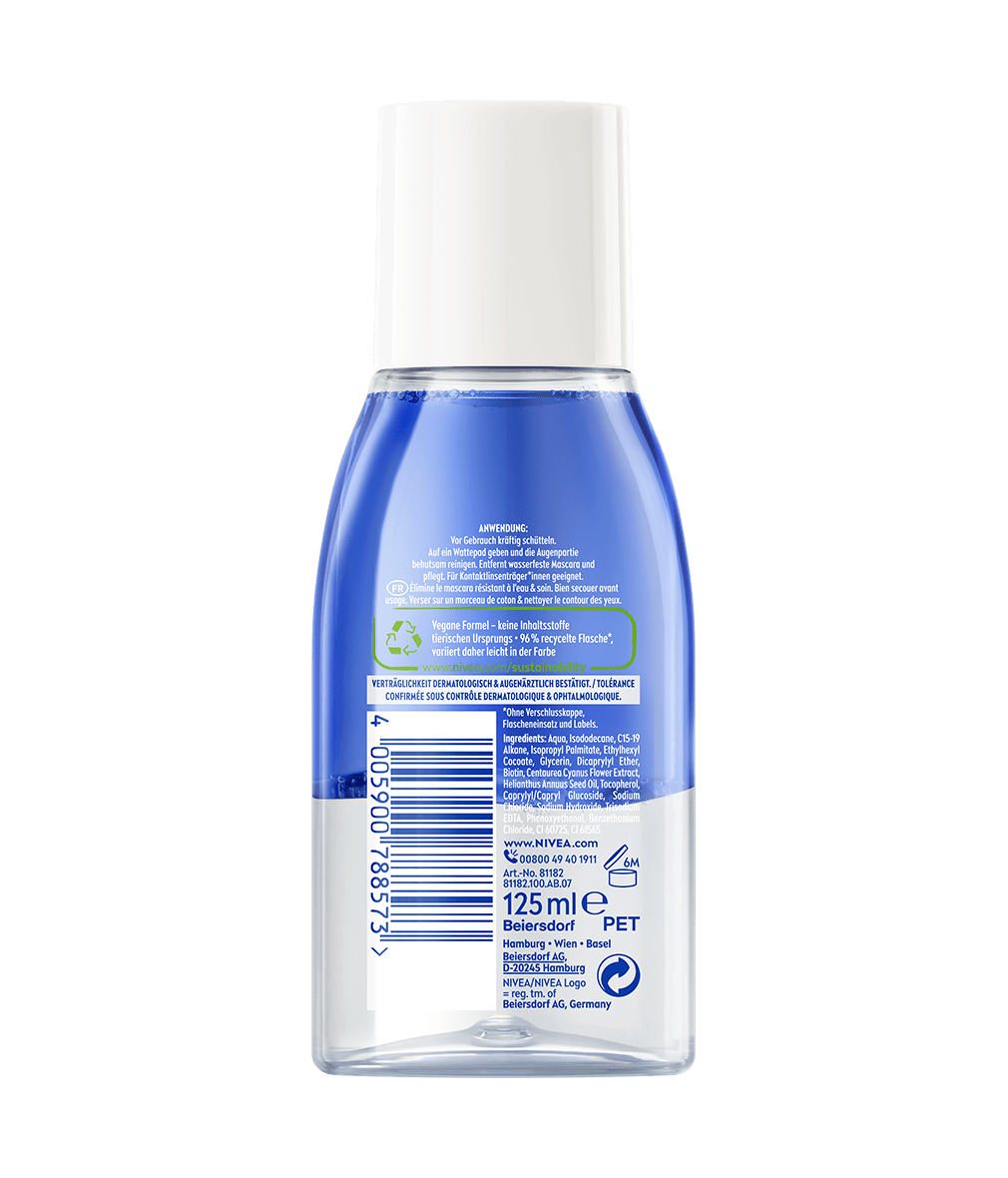 Le Démaquillant Yeux pour maquillage waterproof NIVEA est enrichi en biotine et il élimine efficacement même le mascara & le maquillage extra waterproof.