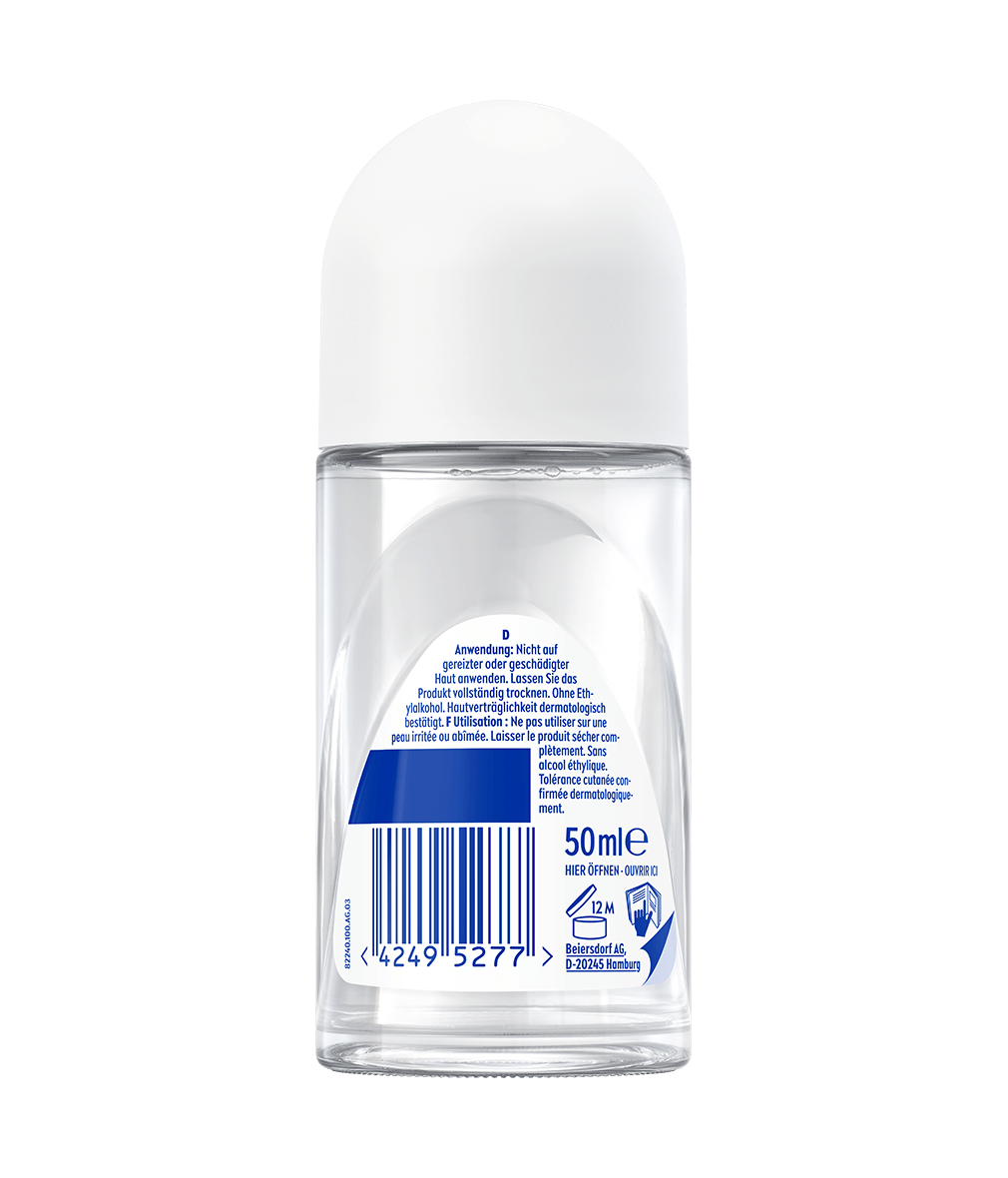 Le Déodorant Black and White pour femmes offre une protection anti-transpirante efficace, sans laisser de taches jaunes ou de résidus blancs: DEO Roll-on Black & White Invisible Clear NIVEA.
