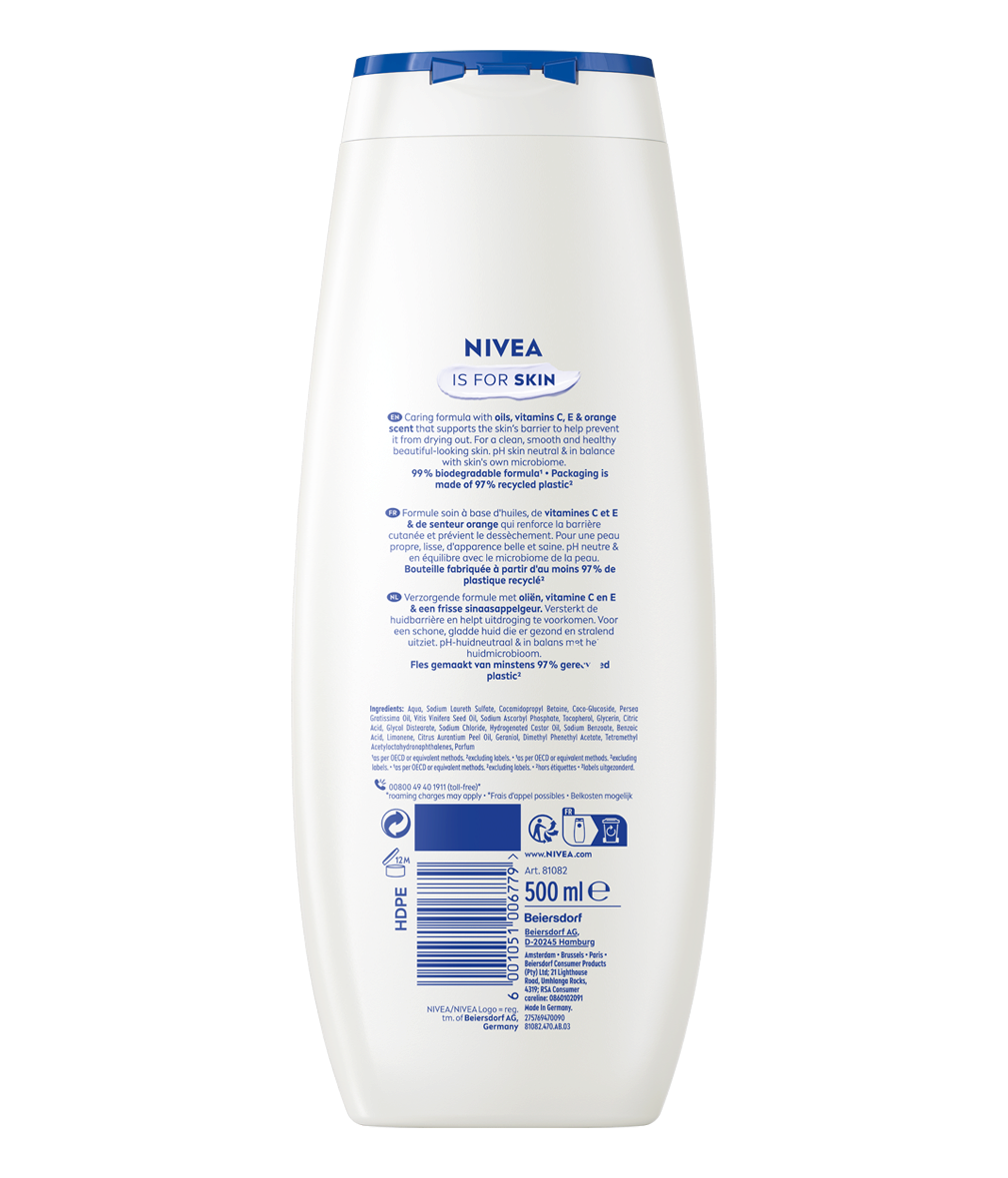 Savourez un agréable moment de soin. Ce gel-douche à l'huile naturelle d'avocat prend soin de la peau et son parfum délicat d'orange chouchoute les sens: Douche Soin Orange & Avocado Oil NIVEA