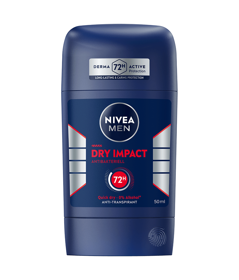 La formule rafraîchissante protégeant de la transpiration associe 72 heures de protection anti-transpirante sûre et le complexe de soin NIVEA MEN. Protection et fraîcheur: DEO Roll-on Dry Impact Male