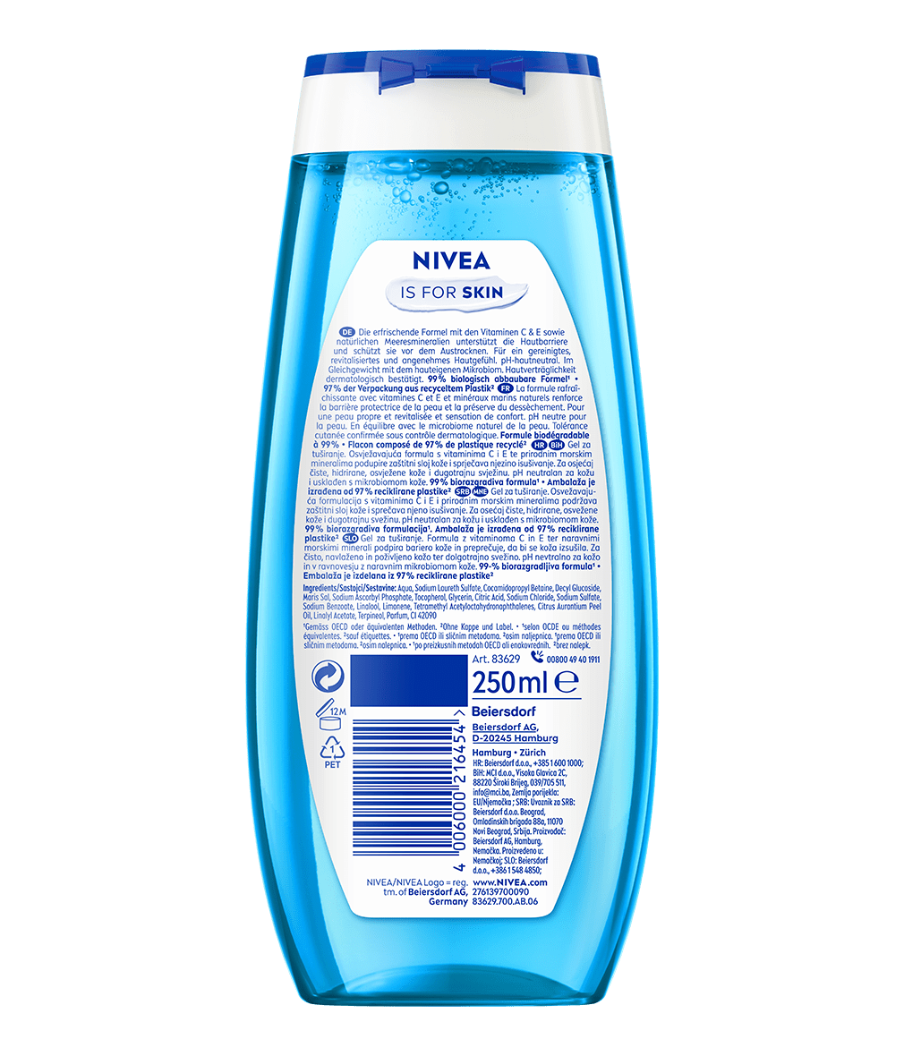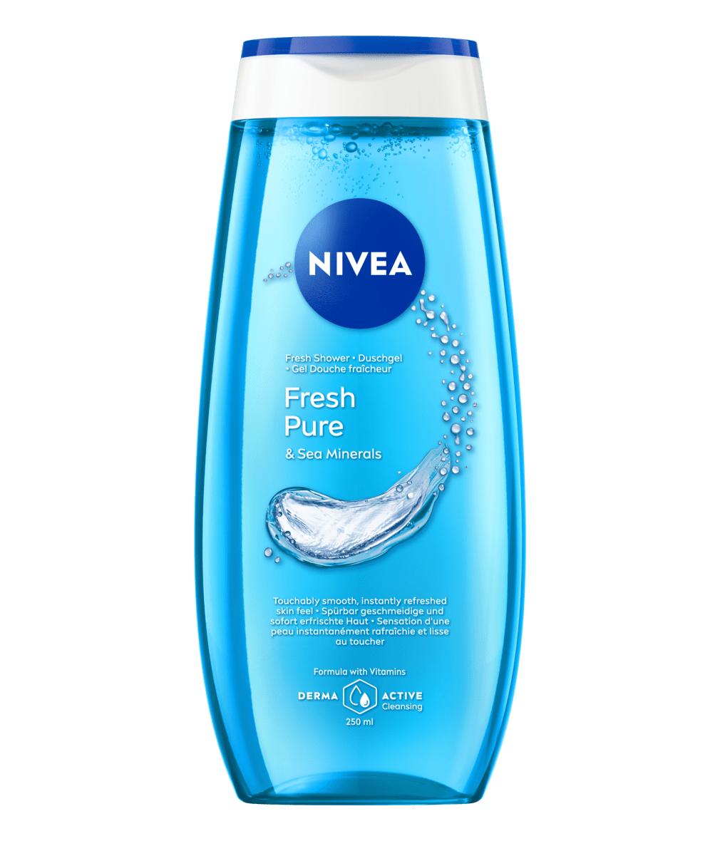 La formule au parfum océanique frais et aux précieux minéraux marins procure la sensation d’une peau douce et une intense bouffée de fraîcheur : Douche Soin Fresh Pure NIVEA