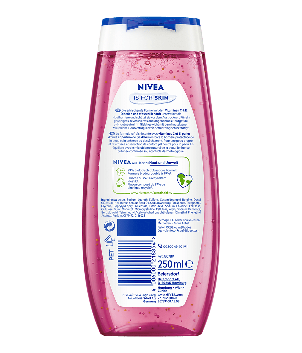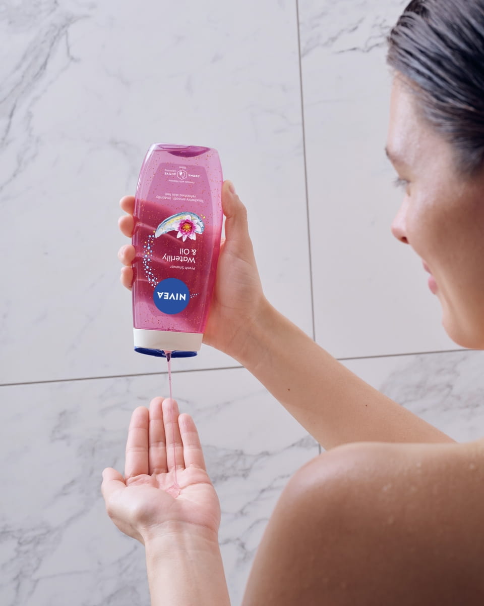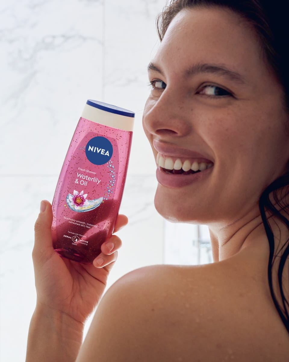 Gel-douche de soin aux précieuses perles d'huile nourrissante et au délicat parfum de lys d'eau pour une peau fraîche et soignée: Douche Soin Waterlily & Oil NIVEA
