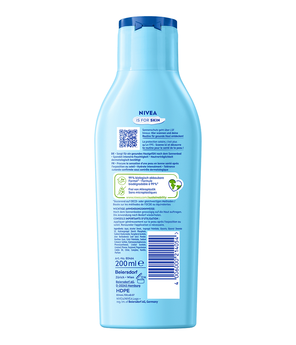 La Lotion de Soin After Sun Moisture procure un soulagement instantané, apaise et favorise la régénération des peaux stressées par le soleil – pour plus de 48h d'hydratation et la sensation d'une peau revitalisée.