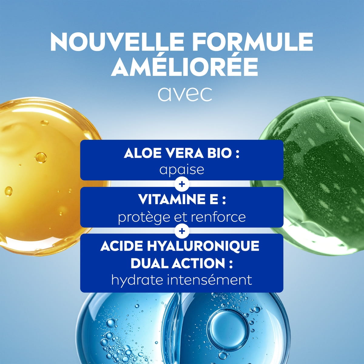 - Avec Aloe Vera bio, vitamine E et acide hyaluronique double action