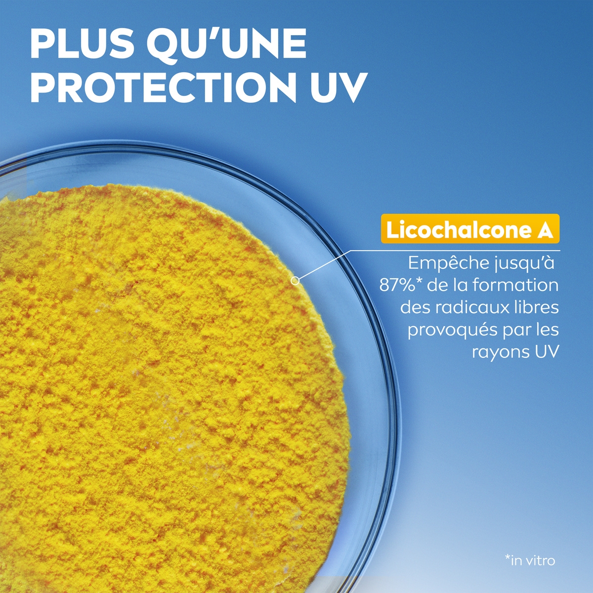 Inclus: Aqua, Alcohol Denat., Butyl Methoxydibenzoylmethane, Bis-Ethylhexyloxyphenol Methoxyphenyl Triazine, Ethylhexyl Triazone, Distarch Phosphate, Tapioca Starch, Silica Dimethyl Silylate, Glyceryl Stearate Citrate, Phenylbenzimidazole Sulfonic Acid, Oryza Sativa Starch, Glyceryl Stearate, Diethylamino Hydroxybenzoyl Hexyl Benzoate, glycérine, Glycyrrhiza Inflata Root Extract, Carnitine, Tocopheryl Acetate, Tocopherol, Stearyl Alcohol, Myristyl Myristate, Xanthan Gum, Sodium Hydroxide, Cocoglycerides, Carrageenan, Hydroxyacetophenone, Trisodium EDTA, Phenoxyethanol, Parfum