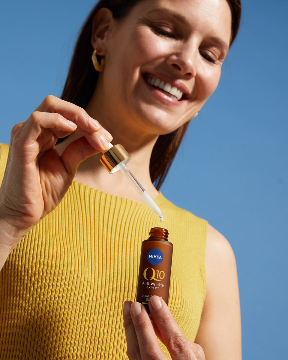 Oui, tu peux utiliser le Sérum Double Action Q10 NIVEA quotidiennement, matin et soir, dans le cadre de ta routine de soin de la peau. Associe-le au Soin de Jour Q10 Power NIVEA pour un résultat 4 fois plus efficace. L'association des deux produits montre en effet une efficacité supérieure dans quatre paramètres que sont la régénération de la peau, l'hydratation de la peau, l'hydratation en profondeur et la disponibilité du Q10 par rapport à l'utilisation du soin de jour seul.