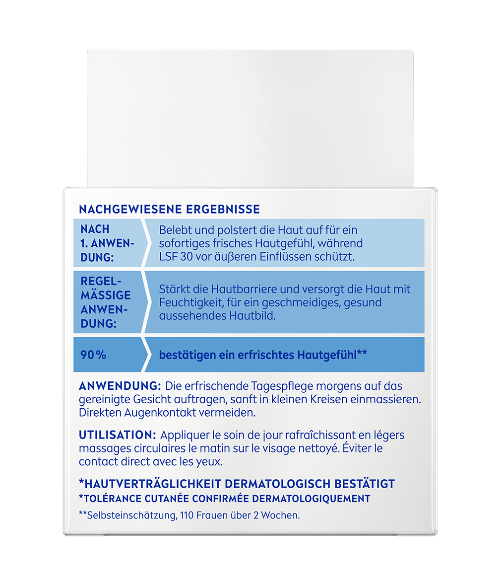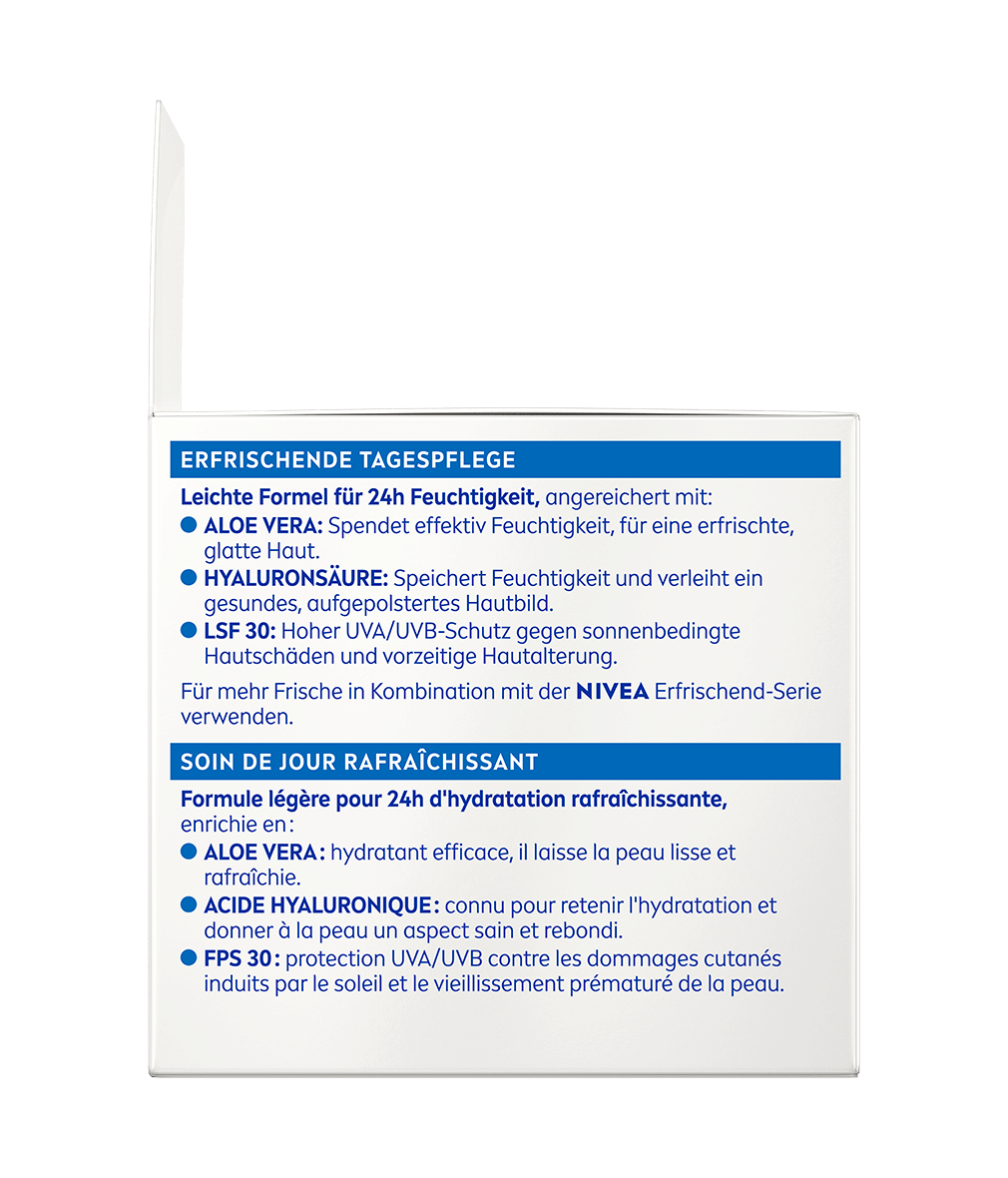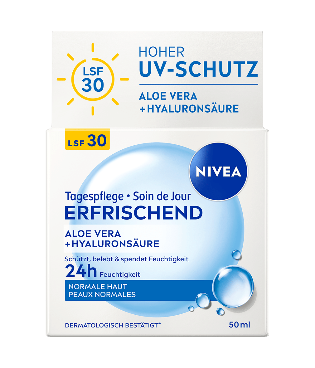 Le Soin de Jour Rafraîchissant NIVEA avec Aloe Vera et acide hyaluronique hydrate la peau pendant 24 heures tout en la protégeant des facteurs externes de stress