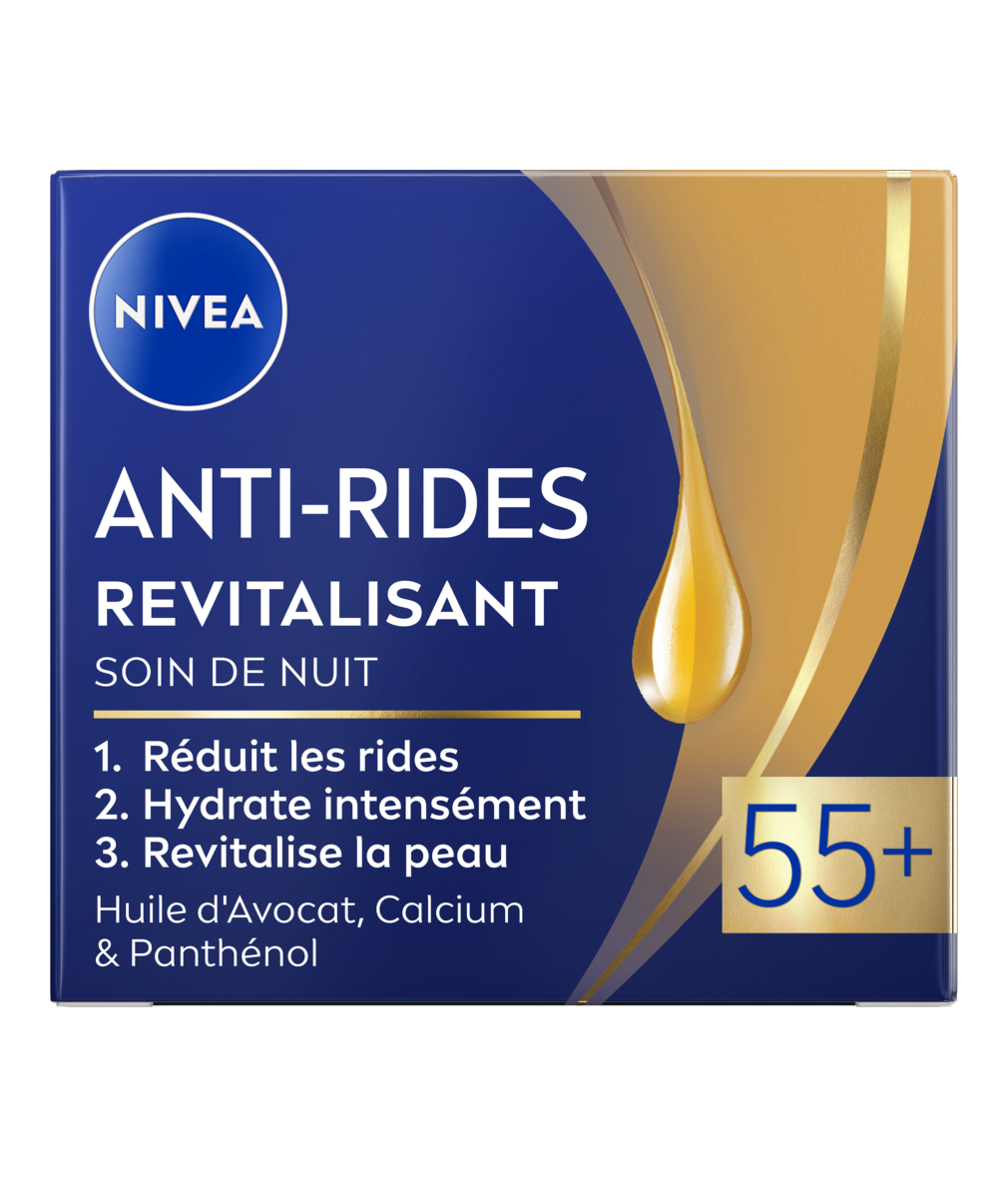 Le Soin de Nuit Anti-Rides 55+ NIVEA revitalise la peau mature exigeante et atténue visiblement les rides. La formule à l’huile nourrissante d’avocat, au calcium et au panthénol hydrate intensément la peau et soutient le processus de régénération.