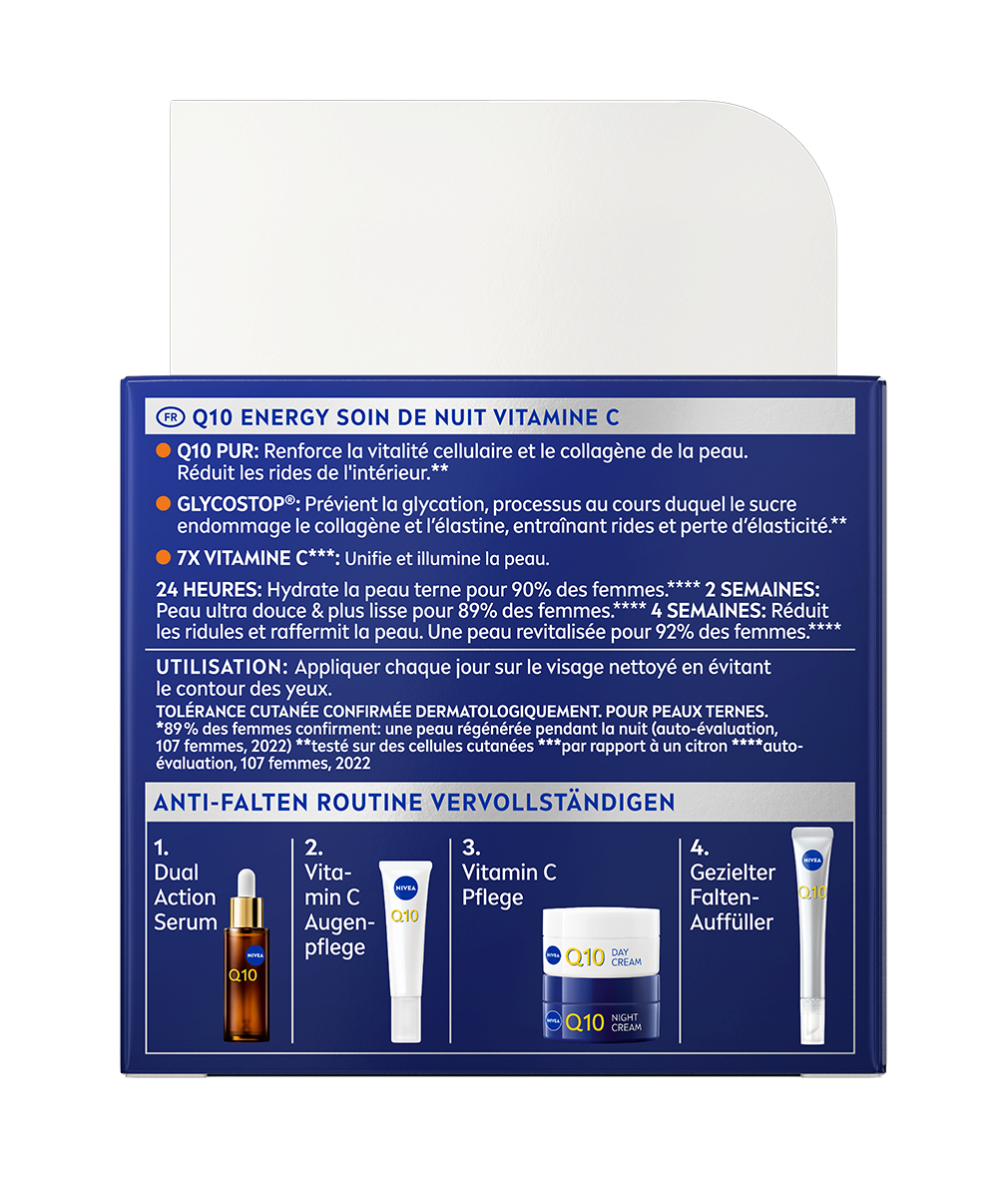 Ce soin de nuit avec vitamine C et Q10 aide la peau à mieux garder son hydratation et renforce la barrière cutanée, tout en combattant les principaux signes de stress tels que le teint terne, les rides et la peau fatiguée.