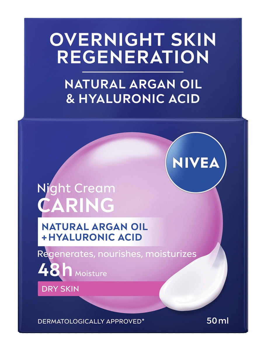 Le Soin de Nuit Nourrissant NIVEA avec huile d'Argan naturelle et acide hyaluronique laisse la peau lisse, douce et souple