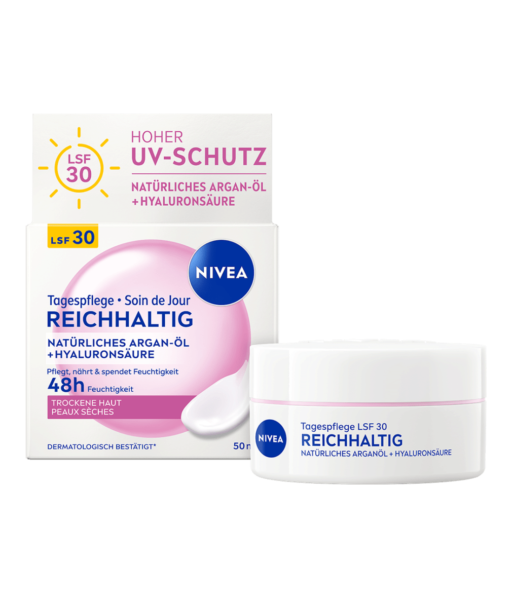 Avec l’âge, notre peau change. Les cellules se régénèrent plus lentement, elles produisent moins de collagène et la peau se déshydrate et perd son élasticité. Le centre de recherches en dermatologie de NIVEA a mis au point des crèmes pour le visage spécialement conçues pour répondre aux besoins des peaux matures. Leurs formules innovantes atténuent visiblement les rides, empêchent l’apparition de nouvelles rides et procurent à la peau une apparence plus fraîche et plus jeune. Les rayons ultraviolets du soleil ont une influence particulièrement forte sur le vieillissement prématuré de la peau. Comme dans une certaine mesure, ils peuvent passer à travers le verre, la peau y est régulièrement exposée dans la vie quotidienne. C’est la raison pour laquelle beaucoup de produits de soin de jour NIVEA contiennent un facteur de protection solaire d’indice 15 ou 30 et un filtre UVA spécial. Pour celles qui veulent un soin de la peau mais pour lesquelles un teint plus unifié est important aussi, une crème de jour teintée est une bonne réponse. NIVEA propose des crèmes hydratantes teintées pour les différents types de peau. Les Crèmes BB laissent le teint irréprochable, elles hydratent et protègent tout en offrant un fini lisse et en estompant les petites imperfections avec une touche de make-up.